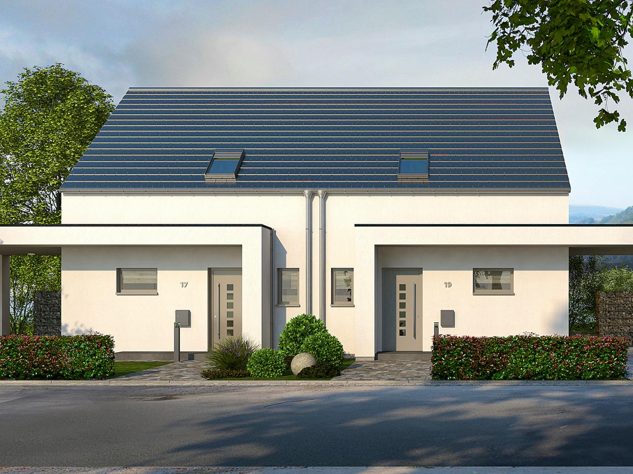 Double 10 beeindruckt von außen mit einem puristisch-eleganten Design und entpuppt sich im Inneren als wahres Raumwunder. Im Erdgeschoss betritt man einen offenen Flur, der zum großzügigen Wohn- und Essbereich führt. Dieser ist nahtlos mit der Küche verbunden und bietet ausreichend Platz für gemeinsame Familienabende und gemütliches Beisammensein. Eine zeitlose gewendelte Treppe führt ins Obergeschoss, das mit drei Schlafzimmern ausgestattet ist und genügend Raum für die gesamte Familie bietet. Die standardmäßig integrierte Be- und Entlüftungsanlage sorgt für angenehmes Raumklima und Frischluftzufuhr in jedem Raum, was einen erholsamen Schlaf gewährleistet. Wie jedes Doppelhaus bietet auch Double 10 die Möglichkeit, den verfügbaren Bauplatz effektiv zu nutzen, indem eine zweite Wohneinheit integriert wird. Dadurch können die Grundstückskosten geteilt werden und finanzielle Einsparungen erzielt werden.