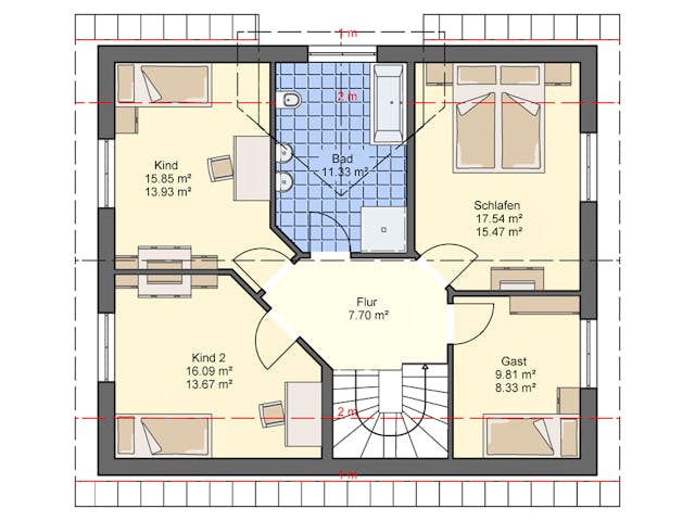 Passen Sie den Grundriss an Ihre persönlichen Bedürfnisse an und besprechen Sie Ihren individuellen Plan mit einem Bauberater des Anbieters.