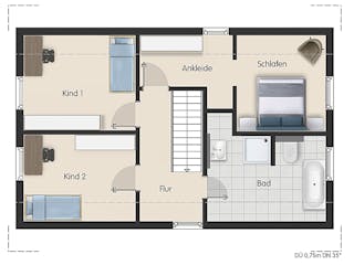 Passen Sie den Grundriss an Ihre persönlichen Bedürfnisse an und besprechen Sie Ihren individuellen Plan mit einem Bauberater des Anbieters.