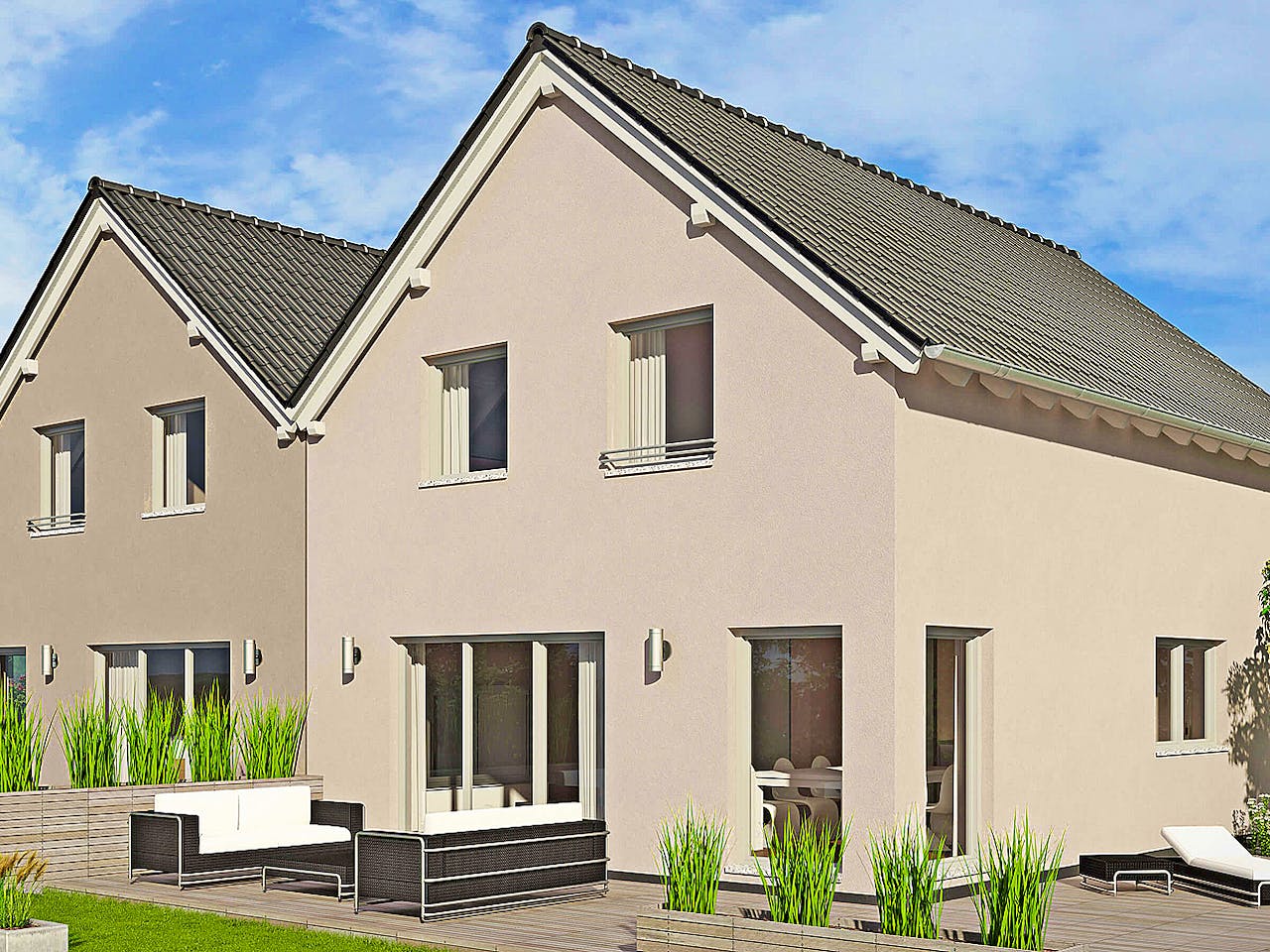 Klare Linien gepaart mit Ausgefallenheit: willkommen im Duett 125. Neben den inneren Werten überzeugt es auch von außen. Denn das moderne Pultdach zieht die Blicke auf die exklusive Doppelhaushälfte.