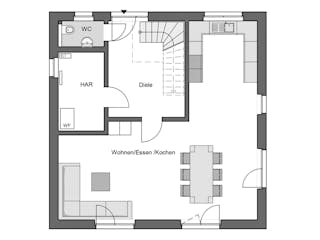 Passen Sie den Grundriss an Ihre persönlichen Bedürfnisse an und besprechen Sie Ihren individuellen Plan mit einem Bauberater des Anbieters.