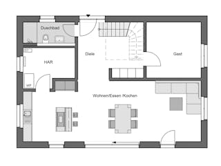 Passen Sie den Grundriss an Ihre persönlichen Bedürfnisse an und besprechen Sie Ihren individuellen Plan mit einem Bauberater des Anbieters.