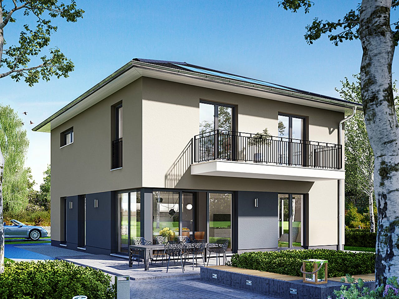 Die Abbildung zeigt eine Ausstattungsvariante. Heinz von Heiden baut die Stadtvilla Arcus 152 sowohl mit Putzfassade als auch mit Verblendern für Sie.