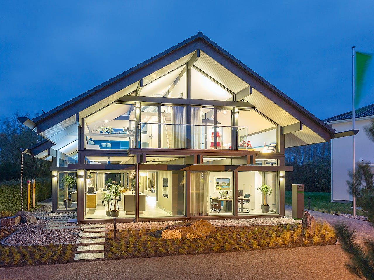 In diesem Zuhause kann die nächste Reise getrost warten, denn das HUF Haus ART 4 verbreitet täglich traumhafte Urlaubsstimmung und stillt das Fernweh auf ganz besondere Weise: Eine lichtdurchflutete Architektur in enger Verbindung mit der Natur im Innen- und Außenbereich, faszinierende Einrichtungsdetails und eine intuitive Haus- und Heiztechnik verwandeln das wohngesunde Fachwerkhaus in ein Wohnparadies mit Urlaubsflair. Komfort wie im Hotel? Natürlich darf auch eine intuitive Gebäudesteuerung im Musterhaus nicht fehlen. Ganz nach Belieben der Nutzer können Funktionen wie Licht, Jalousien, Heizung oder Multimedia klassisch per Taster, über einen Touchscreen an der Wand, das eigene Smartphone oder mittels Sprachbefehl gesteuert werden. Einlass ins Haus gewährt ein Fingerprintsystem. Über diese Standardfunktionen hinaus verspricht das smarte Gebäude mit integrierter Photovoltaikanlage noch viele Highlights, die für Komfort im Allgemeinen und eine flexible Raumnutzung mit Szenenprogrammierung im Speziellen sorgen.