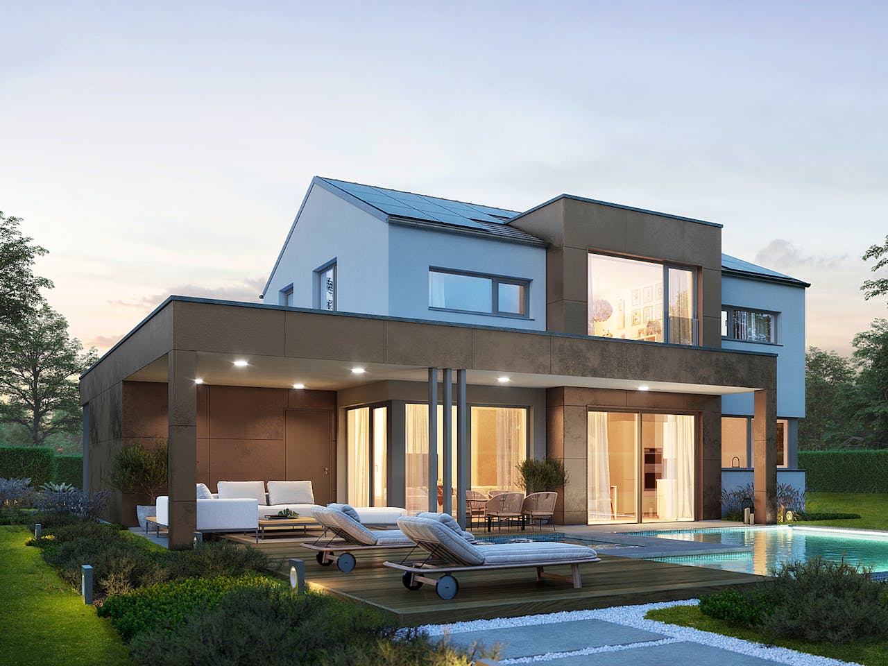 Bei dem Preis handelt es sich um einen Ab-Preis für das schlüsselfertige Haus. Die hier gezeigten Bilder können Sonderausstattungen enthalten, die nicht im Preis inkludiert sind.