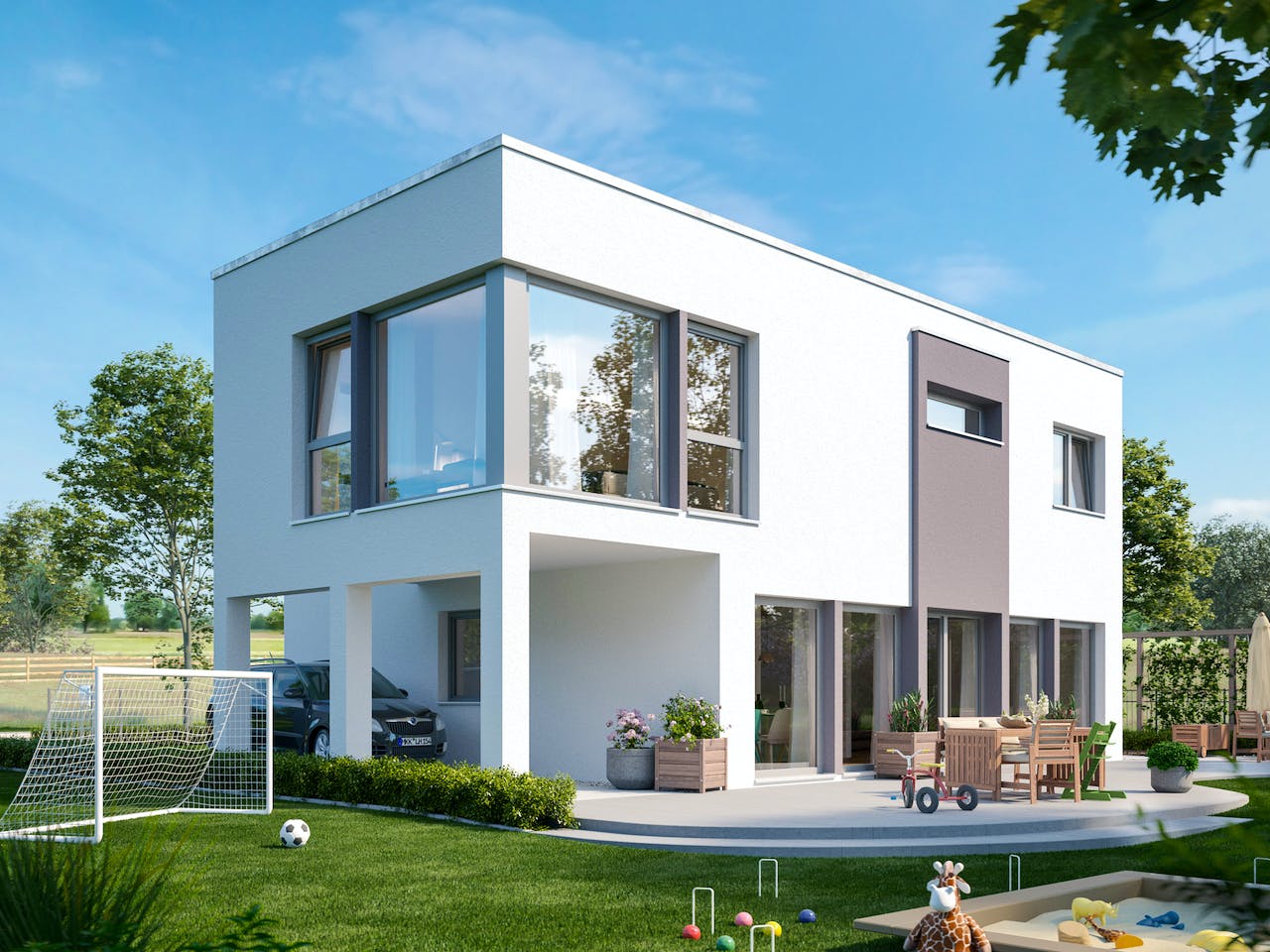 Der Preis bezieht sich auf den Standard-Leistungsumfang in der Ausbaustufe Ausbauhaus-Plus als Effizienzhaus 55 I-KON Standard inkl. Bodenplatte, Zuhause-Paket und Küche gemäß gültiger Bau- und Leistungsbeschreibung Stand 02/2026 und Preisliste 02/2026. Grundrisse und Abbildungen können Extras zeigen. Flächenangaben nach DIN 277.