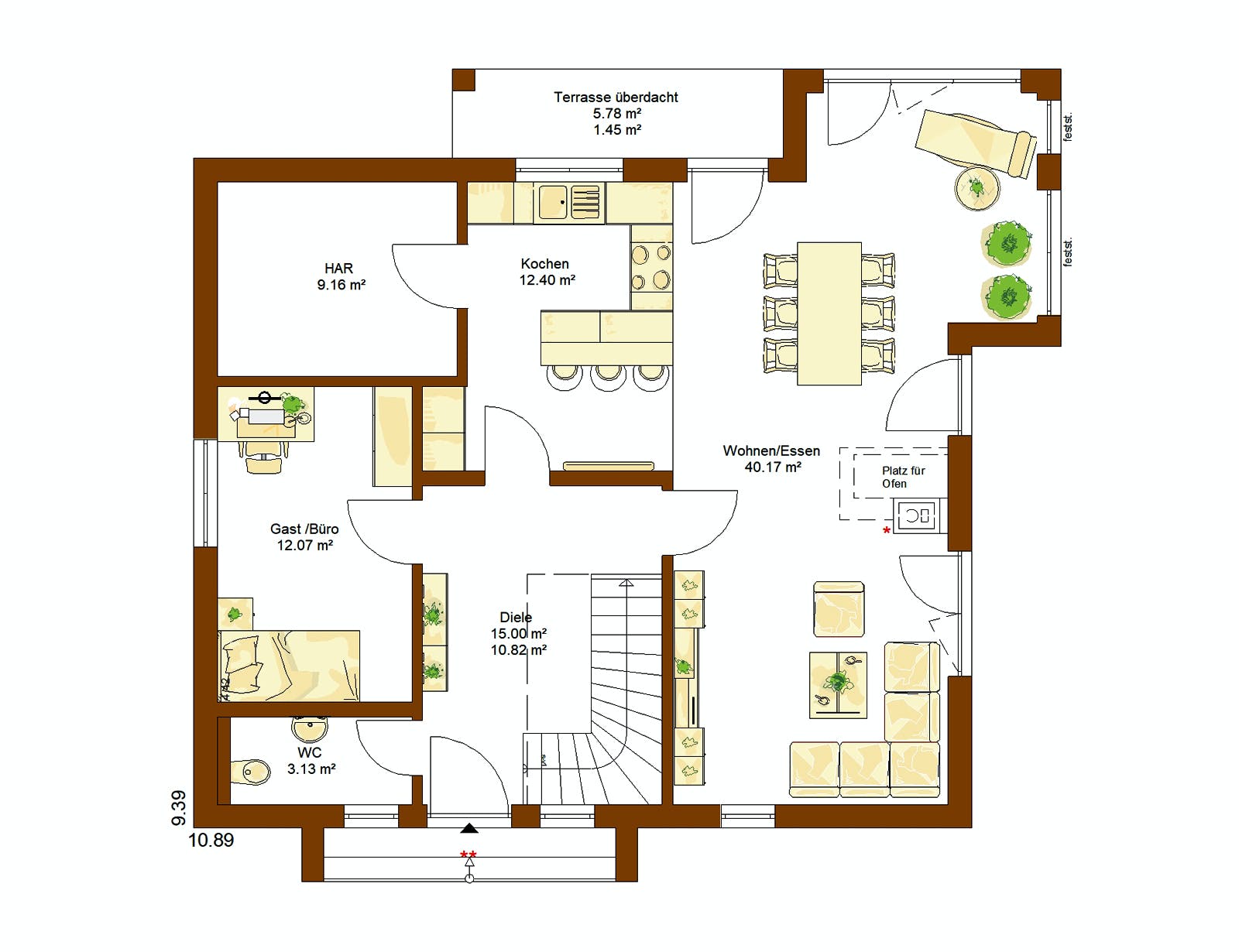 Passen Sie den Grundriss an Ihre persönlichen Bedürfnisse an und besprechen Sie Ihren individuellen Plan mit einem Bauberater des Anbieters.