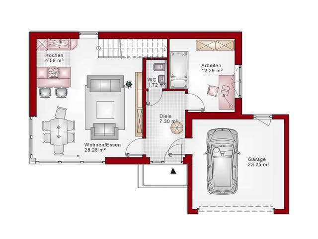 Passen Sie den Grundriss an Ihre persönlichen Bedürfnisse an und besprechen Sie Ihren individuellen Plan mit einem Bauberater des Anbieters.