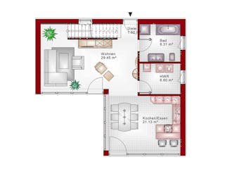 Passen Sie den Grundriss an Ihre persönlichen Bedürfnisse an und besprechen Sie Ihren individuellen Plan mit einem Bauberater des Anbieters.