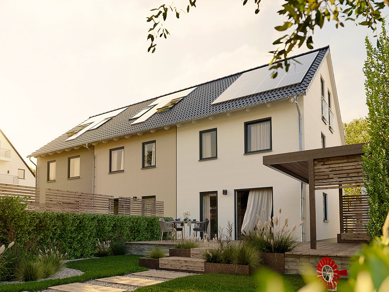 Ein Reihenhaus ist eine optimale Lösung für alle, die sich genügend Raum zum Wohnen wünschen, aber zugleich in einer Region bauen in der Grundstücke knapp sind. Das Mainz 128 wird in klassischer Weise als Kombination von drei Reihenhäusern gebaut. Drei Familien leben quasi unter einem Dach, Sie können von der guten Nachbarschaft und der Hausgemeinschaft profitieren. Zugleich lässt Ihr Reihenhaus genügend Platz für Ihre Individualität.