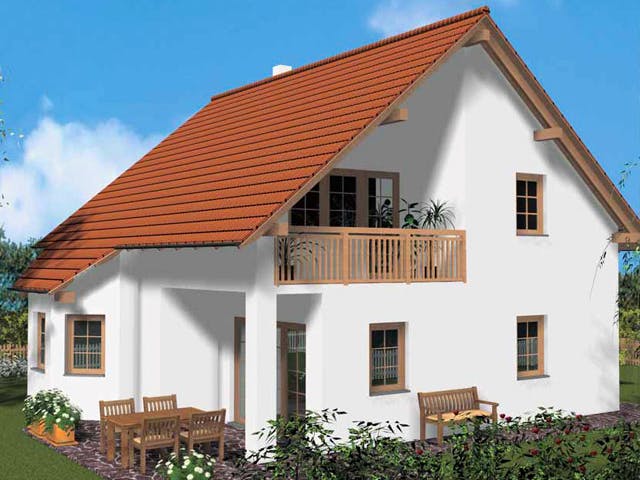 Zeitlos und geschmackvoll: Das Haus für die Familie mit bis zwei Kindern. Das große Wohnzimmer erhält durch den Erker eine persönliche Note. Schön praktisch: der direkte Zugang von der Küche ins Wohnzimmer. Mit großem überdachtem Balkon und Terrasse.
